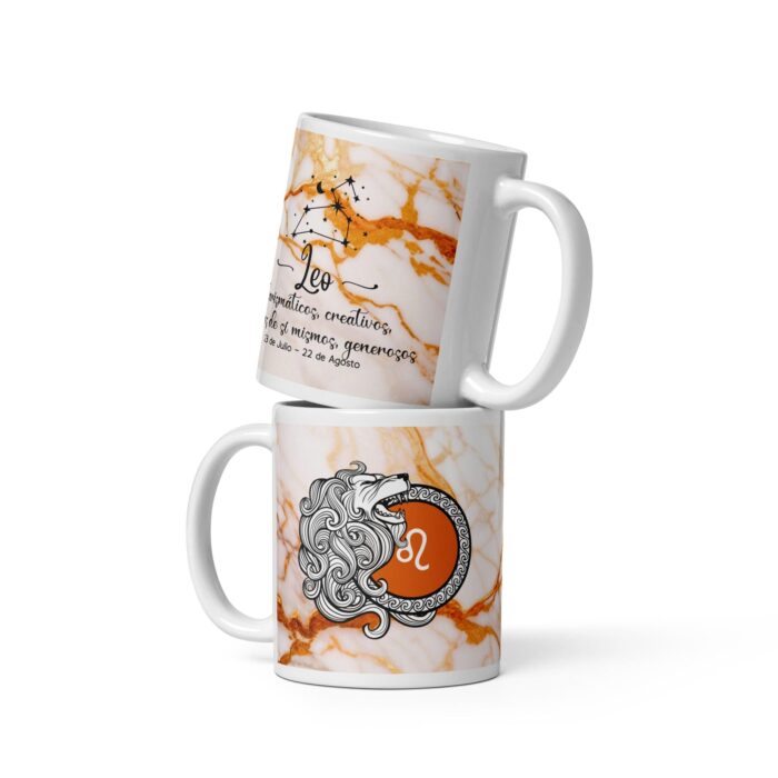Taza blanca brillante horóscopo | 05 Leo 11 oz